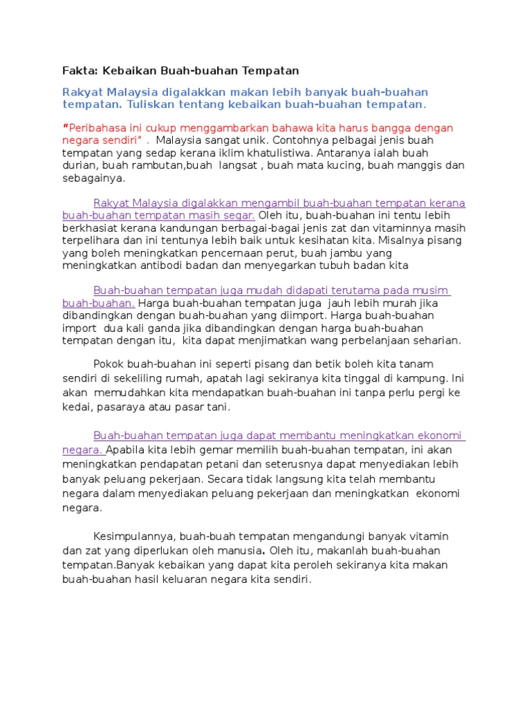 Karangan Kebaikan Makan Buah-Buahan Tempatan PDF