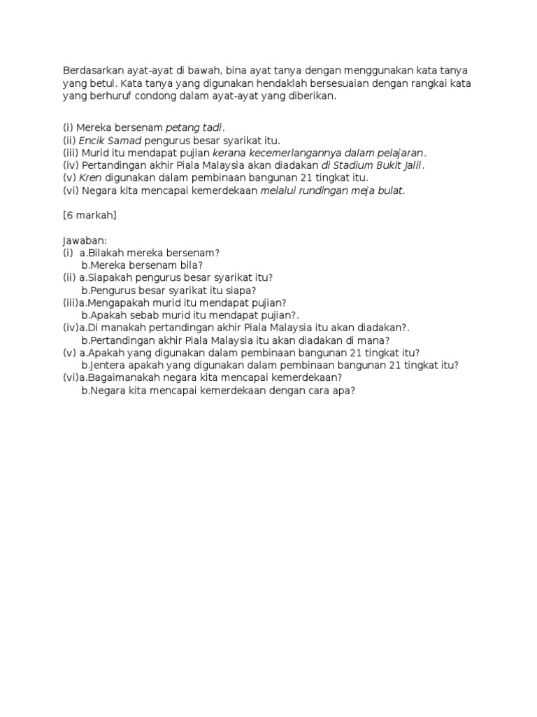 Soalan SPM Bina Ayat PDF